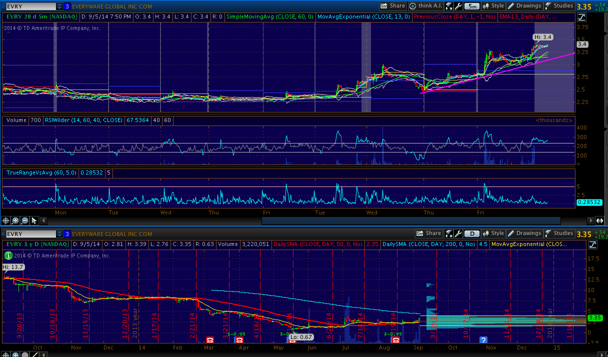 EVRY - Had a nice pop in the morning and strong finish with volume on Friday. Watching for a weak open and r/g move.