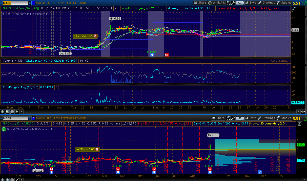 MAGS - Volume is fading off. Waiting for it to look weak and have a breakdown of support at 5. But still, be careful because this could still squeeze up.