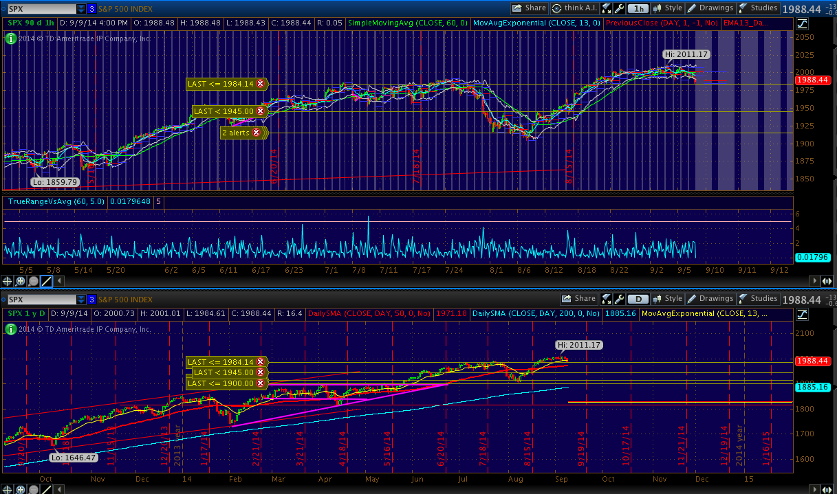 VXX or UVXY - if the market has a nasty open tomorrow, VXX could have a nice pop to 30. Maybe 32. Since this is correlated to the VIX which in turn is correlated to the SPX, I'll be watching for whether SPX can defend 1984. If 1984 can't hold, I wouldn't be surprised to see a dip to 1950.