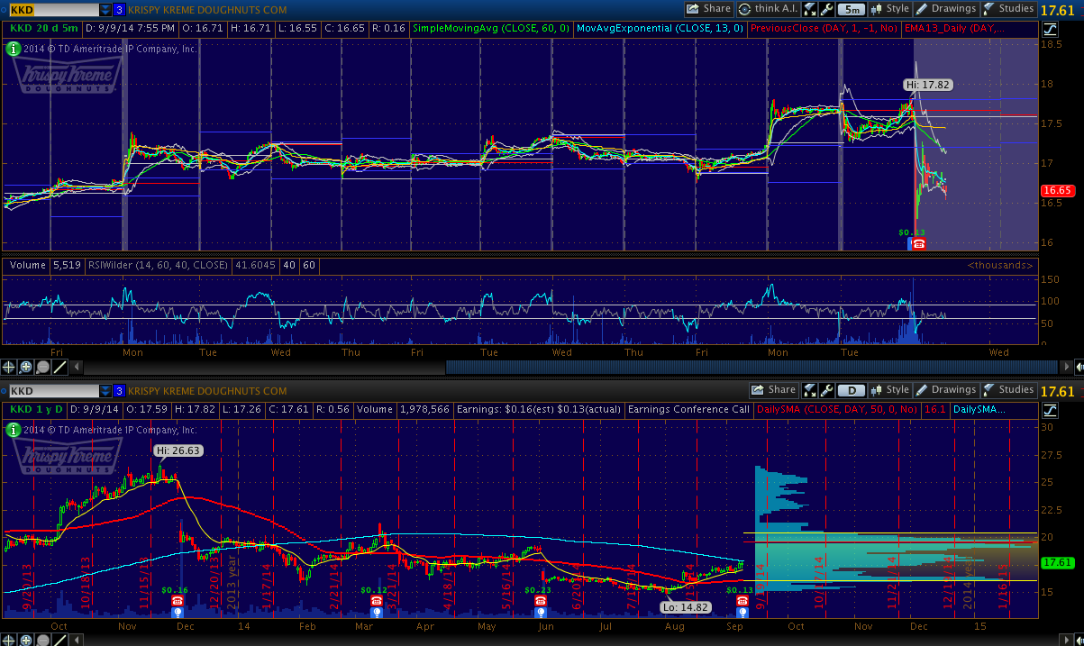 KKD - earnings were mixed, but stock tanked AH. Watching for a stabilize and rebound tomorrow.