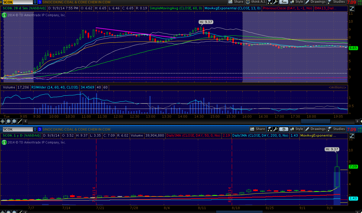 SCOK - Of course, the nutty momentum stock of the day. I don't feel comfortable playing these sort of stocks but it will make an interesting beast to watch.