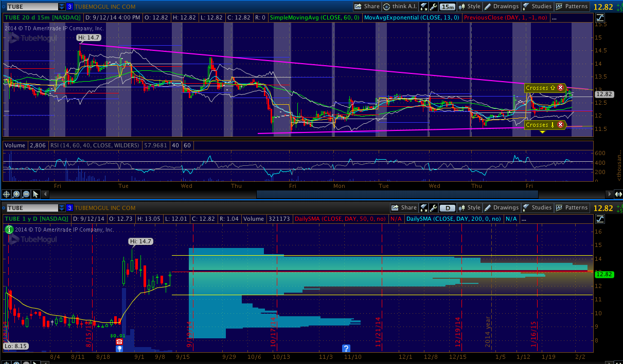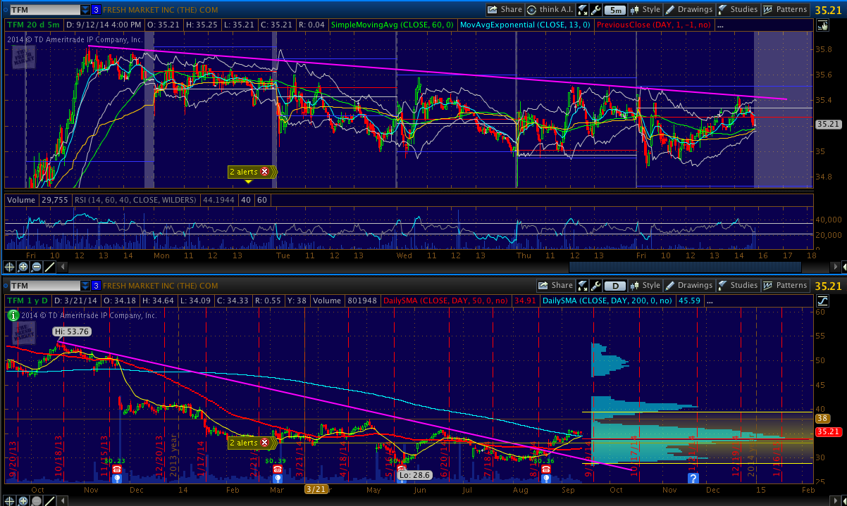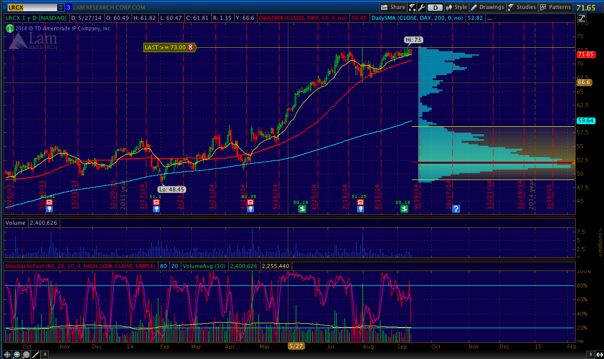 LRCX - This weekend's positive Barron's article may push this above resistance. But given it's already had a good run, I'm skeptical. It is worth watching for high-volume break above 73, but I would rather wait for a pullback and higher low before longing this.