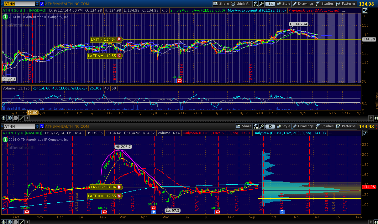 ATHN (update) - This pullback to 135 is make or break. It could break back to the consolidation area here or become support and run higher. Given how exciting this stock is to investors in its space, I am long biased. You have a tight risk area for a lot of upside.