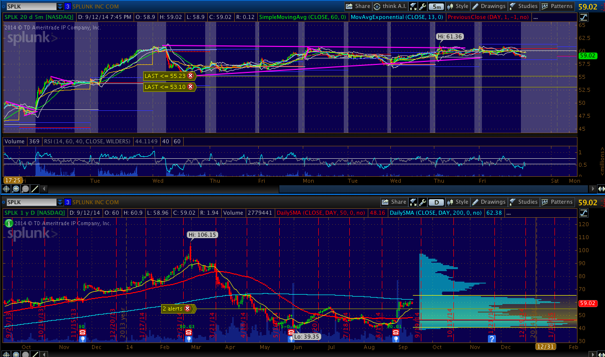 SPLK - Still flagging. Watch for a break of the high, 61.36.