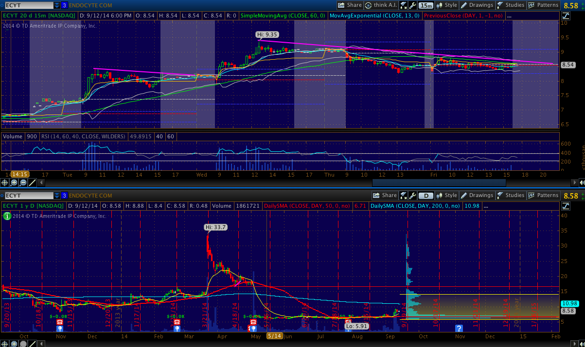 ECYT - Flagging for a potential run to the 200 day moving average zone.