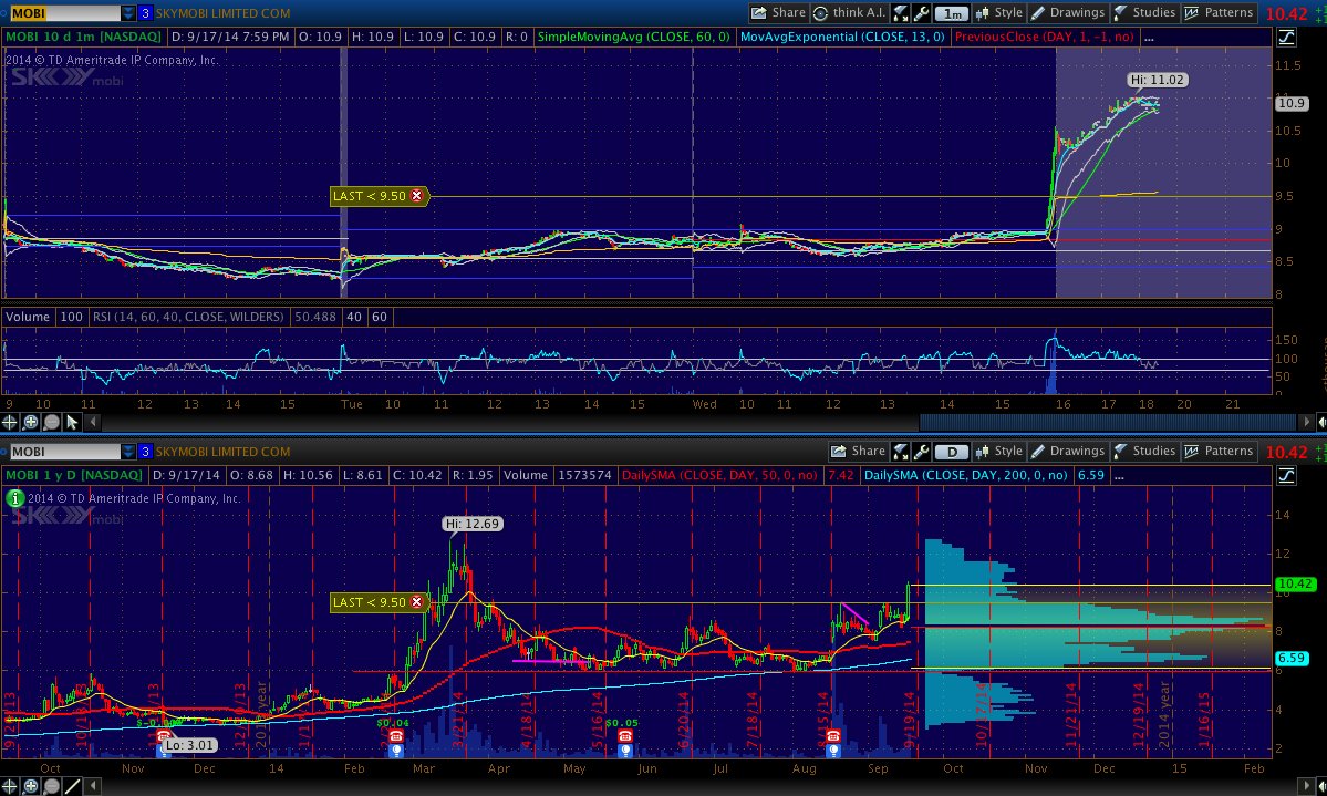 MOBI - for some reason this thing went nuts at the end of the day. I cannot find any news. Possible long play here, or look for signs of topping and fade.