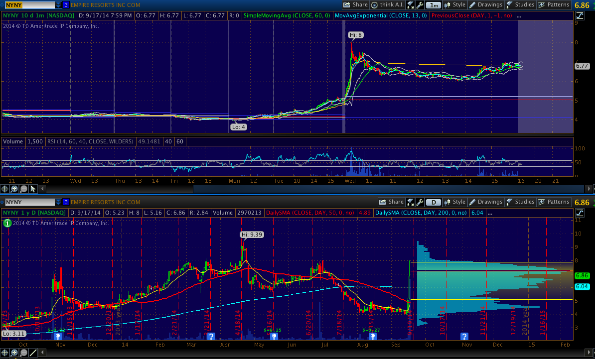 NYNY - Nice move here. Interested in a red/green push to 8. I don't think it's ready for a pullback yet.