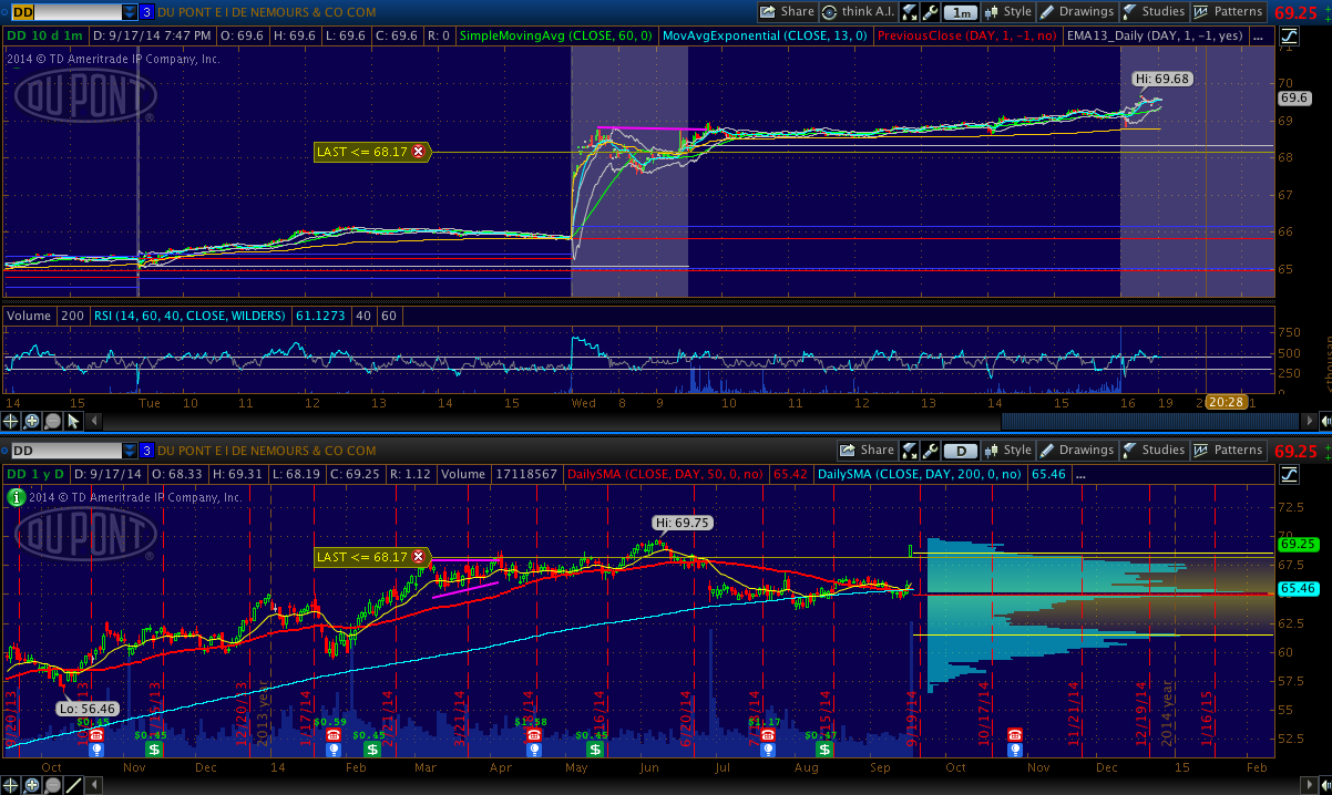DD - Possible swing trade idea. Nelson Peltz is pushing the board to split up the company. This could be a breakaway gap.