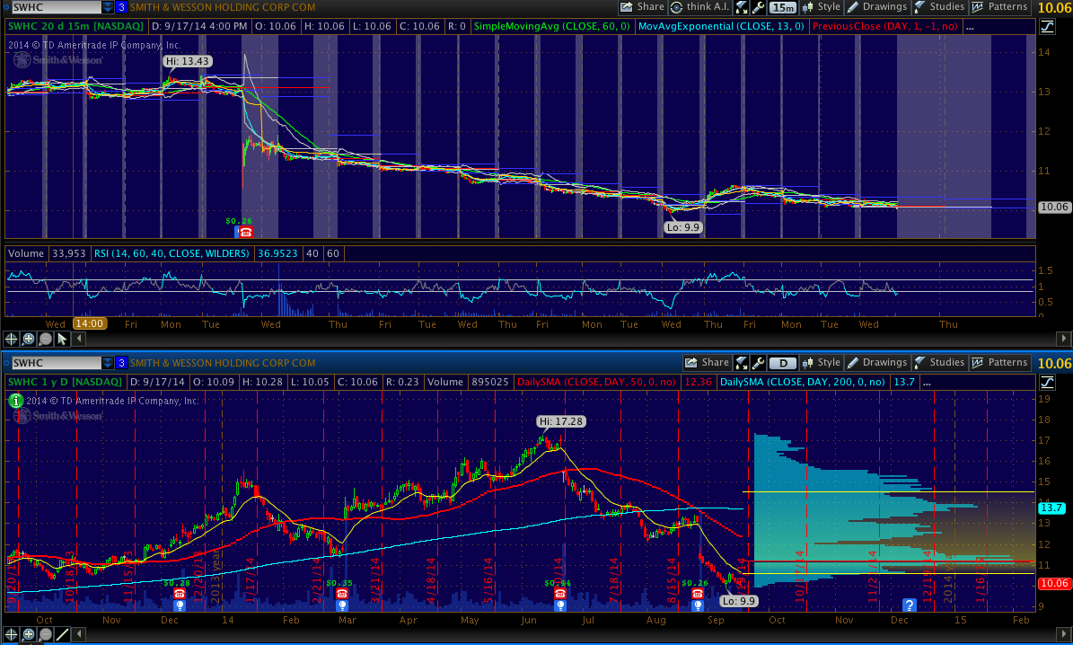 SWHC - This looks like it's bottoming. Could probably run back to 12. Good risk/reward from here if your stop is the upper 9's.