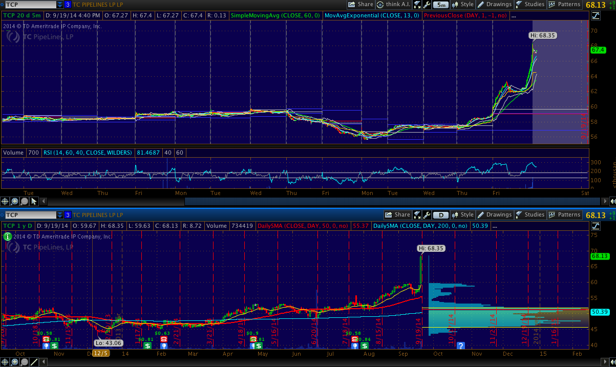 TCP - I can't explain what was driving the breakout on Friday, but tomorrow it will either push to 70 or start fading back to the breakout zone at 60. Make a plan for either scenario based on the premarket action.
