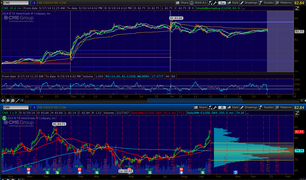 CME - Watching for the formation of a bull flag and push to take out the near term high at 83.66. <div class="image-box">