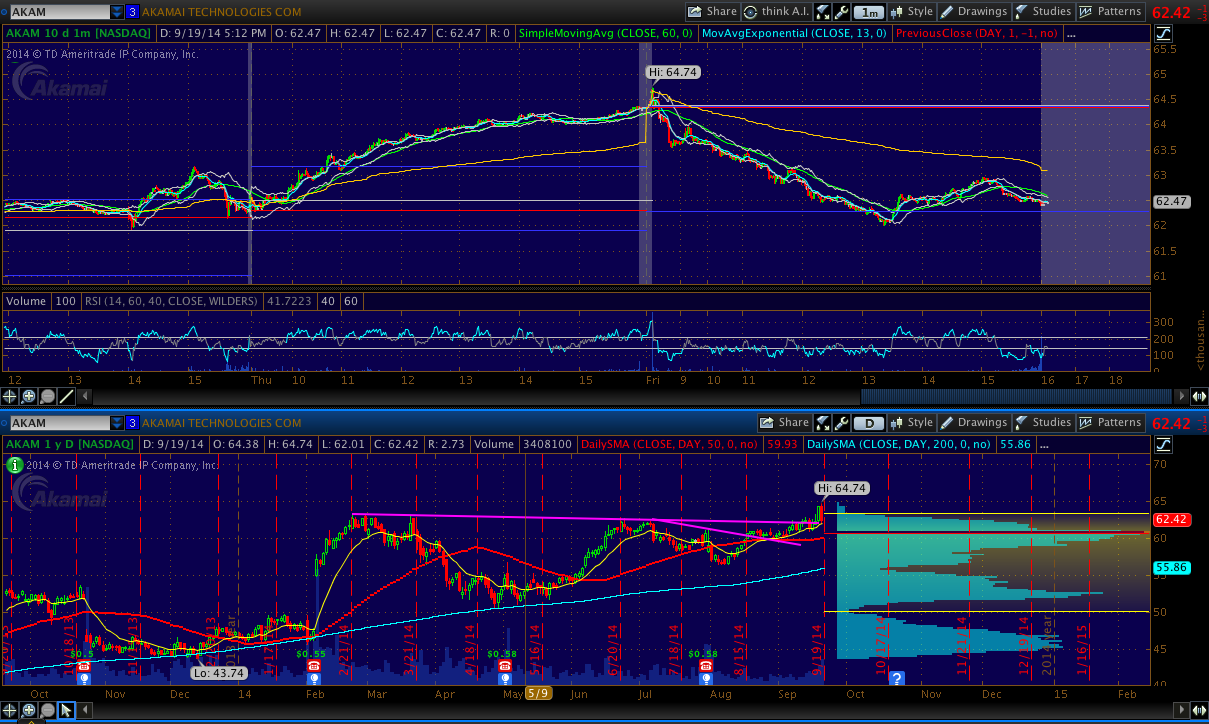 AKAM - Nice pullback to the breakout area. This is a good spot to load up with a risk on the 13EMA.