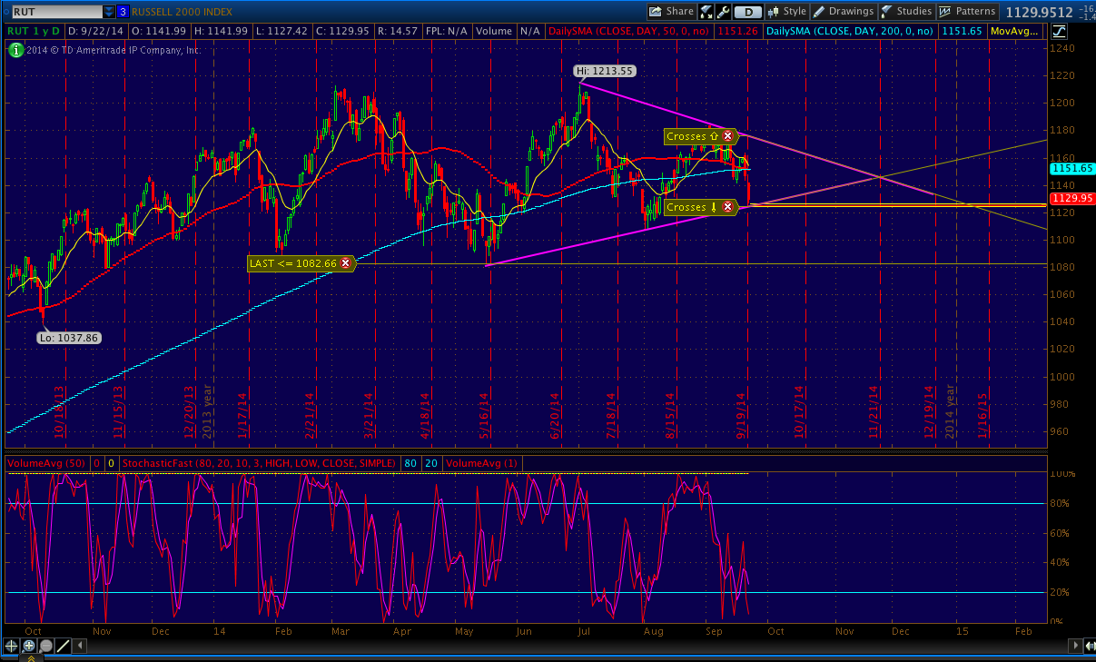 I do not like the action in the market today. The Russell 2000 is sucker punched and many of the setups I posted yesterday have broken down. This action reminds me a lot of what the small caps looked like early in the year when they topped out and and had a correction.