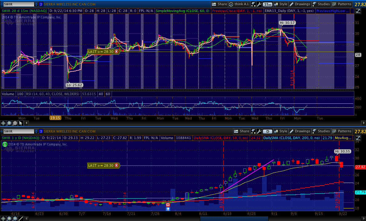 SWIR - Ugly breakdown today. Looking for a pop to 28.30 to short.