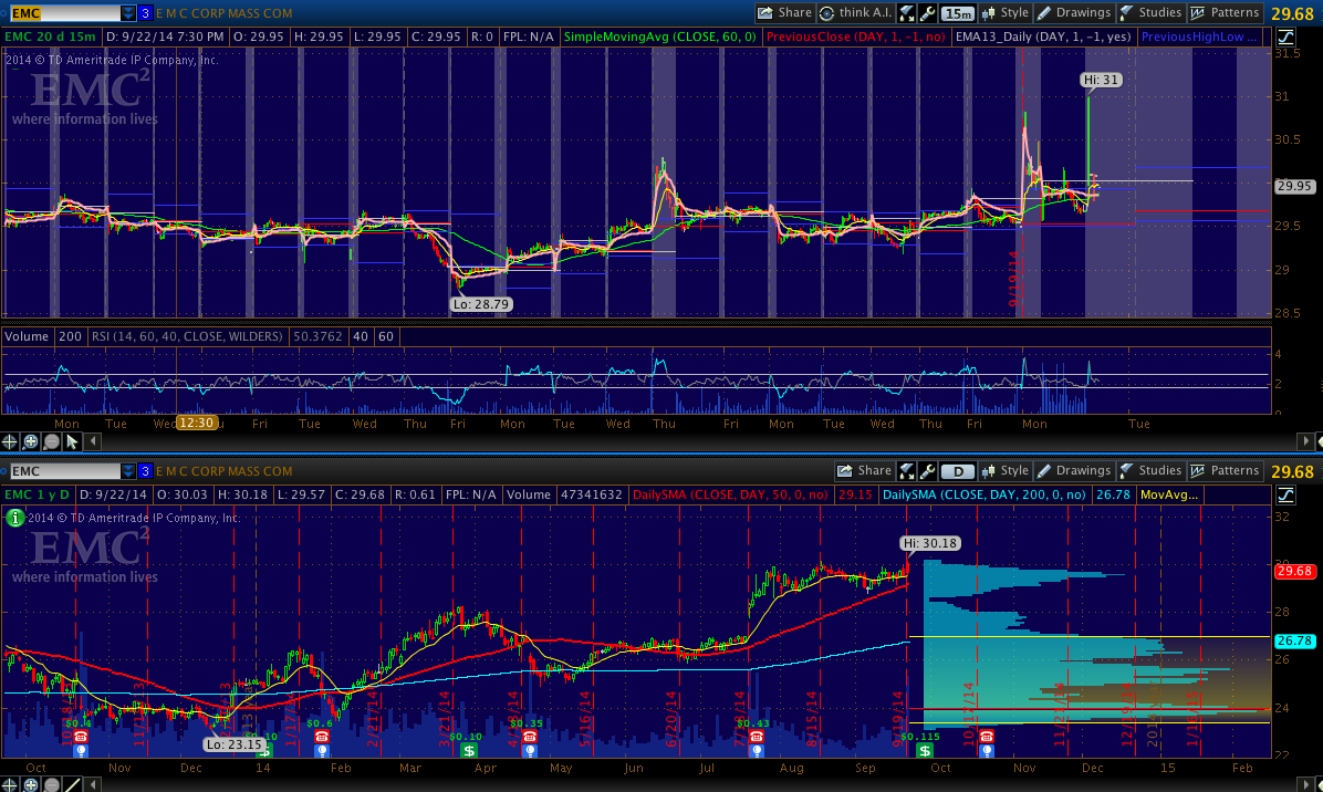 EMC - News that they are looking for strategic alternatives came out after hours. This is probably one of the few stocks that can pop out of the gate.