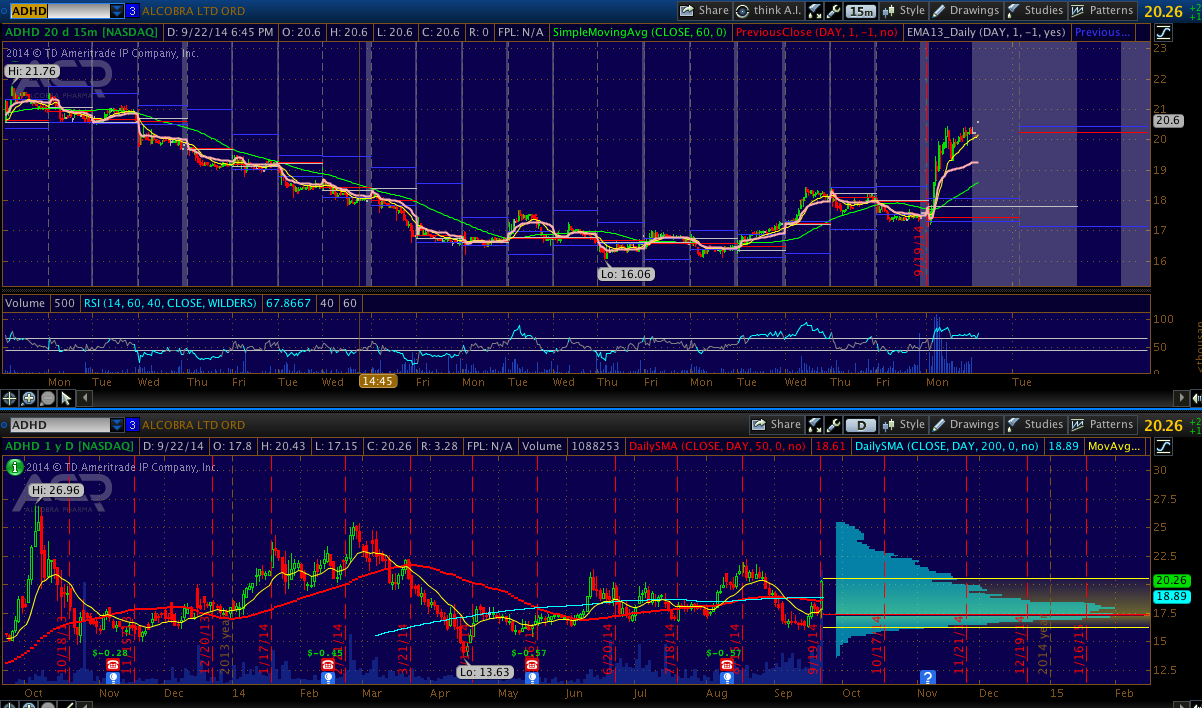 ADHD - Nice move up today on clinical trial results. Looking for r/g play.