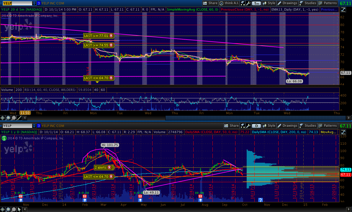 YELP - it defended 66 today. If 66 can still hold it may consolidate here below 70, or bounce back.