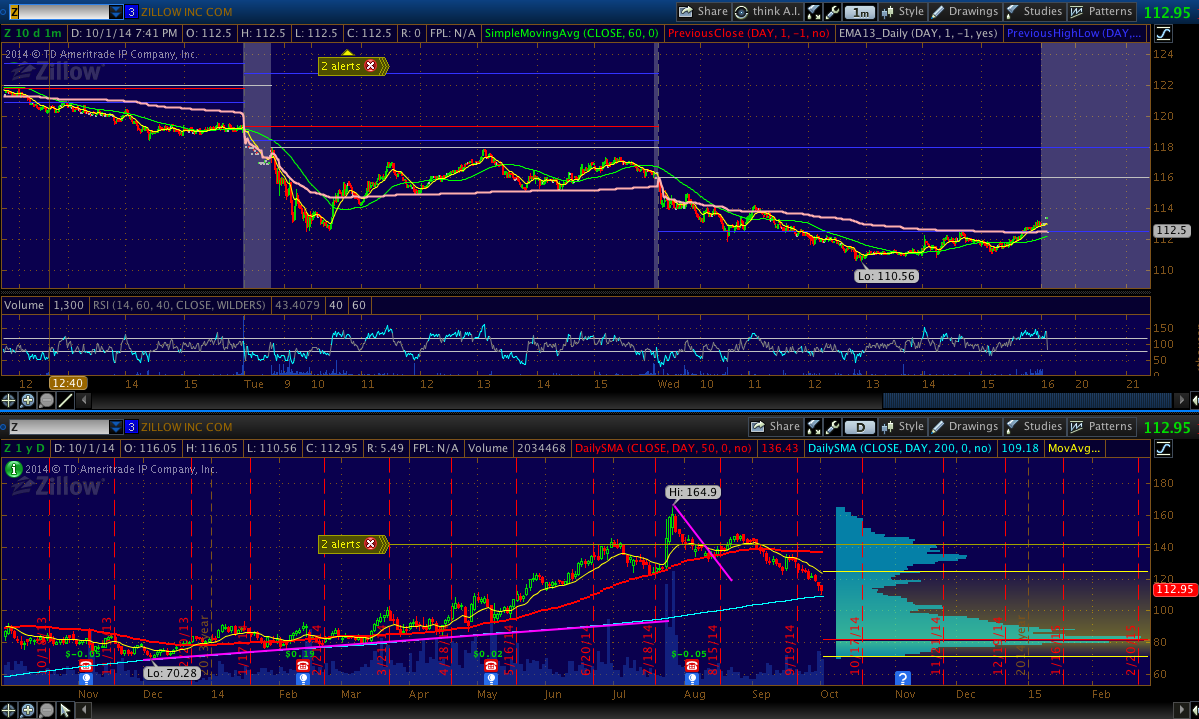 Z - Pullback to the 200DMA. Nice U-shape today with a volume increase.