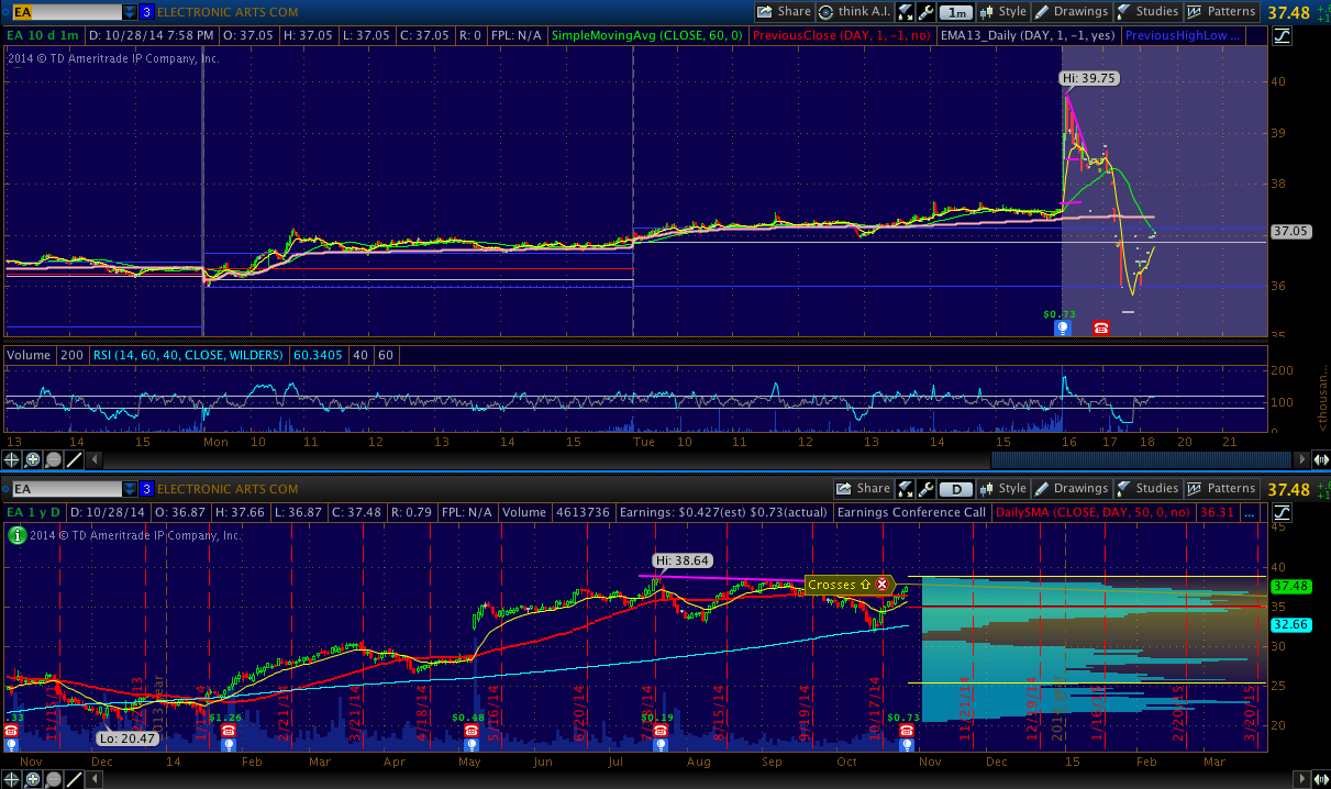 EA - Big earnings beat and upped guidance. I was initially thinking this would gap up, but the AH reversal is odd to me. It could still have a strong day tomorrow. If it takes out the ATH of 38.64, sky's the limit.