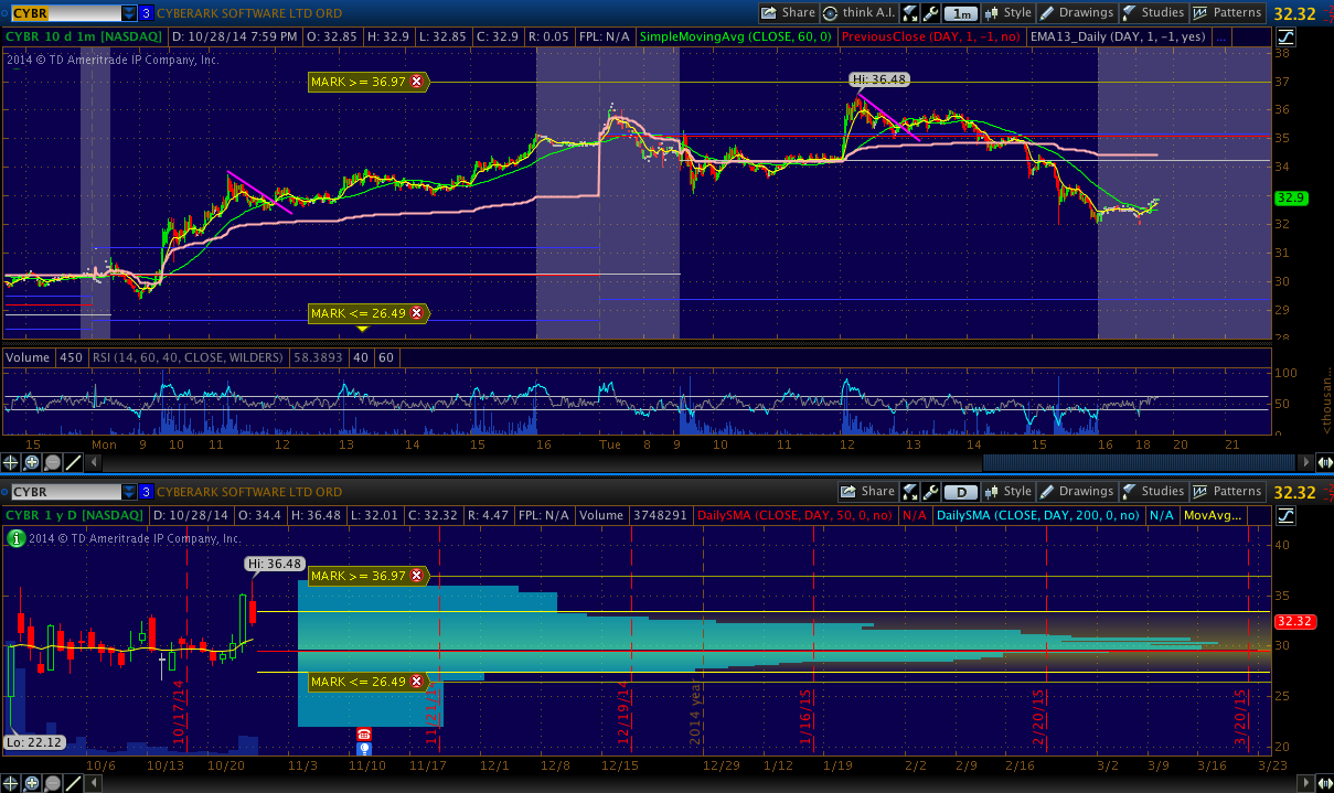 CYBR - Nice volatility today. It seems to be breaking out. Looking for a possible ramp back tomorrow.