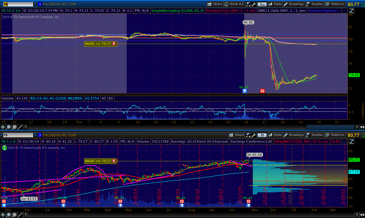 FB - Expecting this to have some good moves in it coming off of earnings. Unbiased on direction, just play the setups as they come.