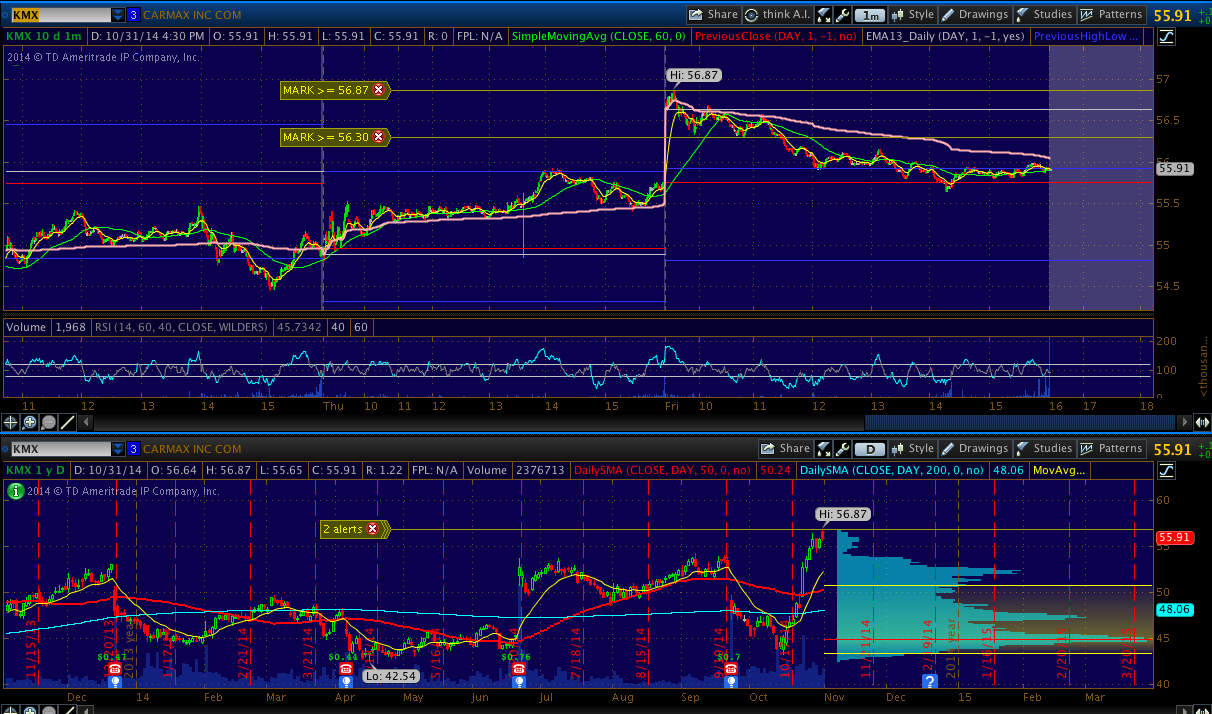KMX - Friday finally had the gap and crap I've been waiting for. Looking for this one to pull back some. Short biased tomorrow.