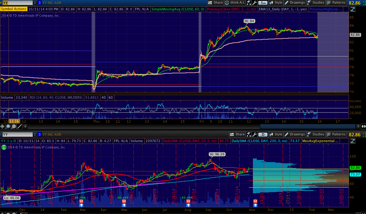 YY - acting like it wants to break out. I missed the move in QIHU, but YY has a similar look over the past few weeks.