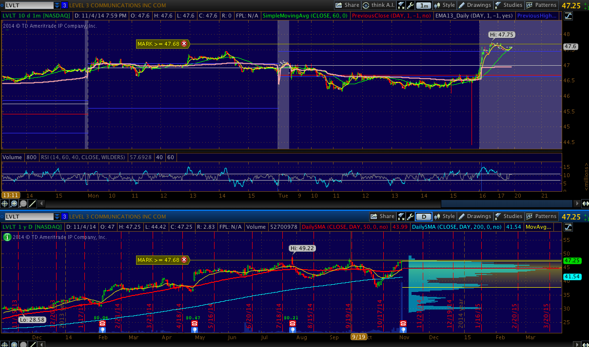LVLT - reports before the open. Looks like it can do a flat top breakout if the e/r is good. But, chart looks overextended here. Looking at moves either direction.
