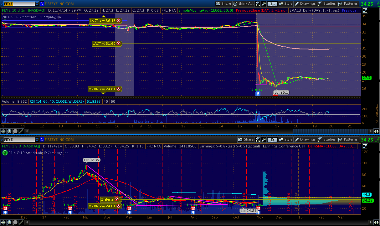 FEYE - They delivered in-line results but the after-hours action was not pretty. It may be an overreaction. I think this may play out similar to YELP from a couple of weeks ago.