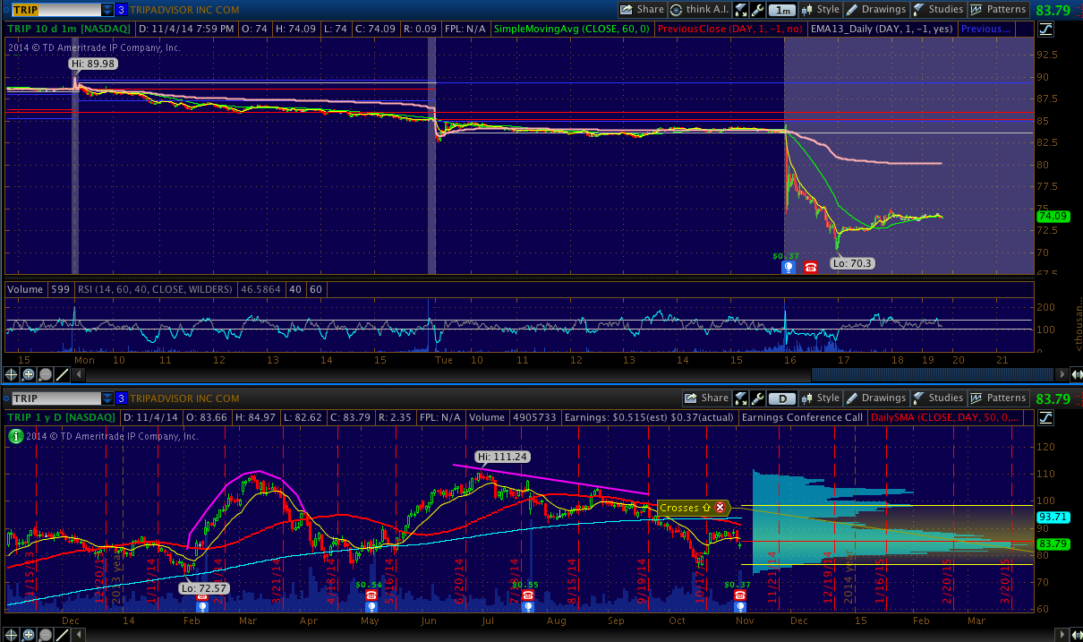 TRIP - Another punished stock, but this was a revenue miss. I'm more short biased on this one than FEYE.