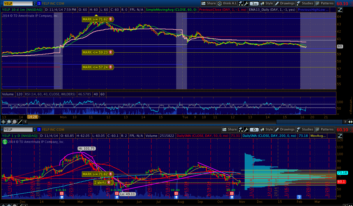 YELP - Another one I want for long swing trade. Letting it come in a little.