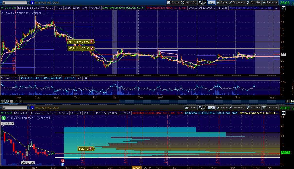 W - Another one I'm interested in buying for a swing trade. Support at 24