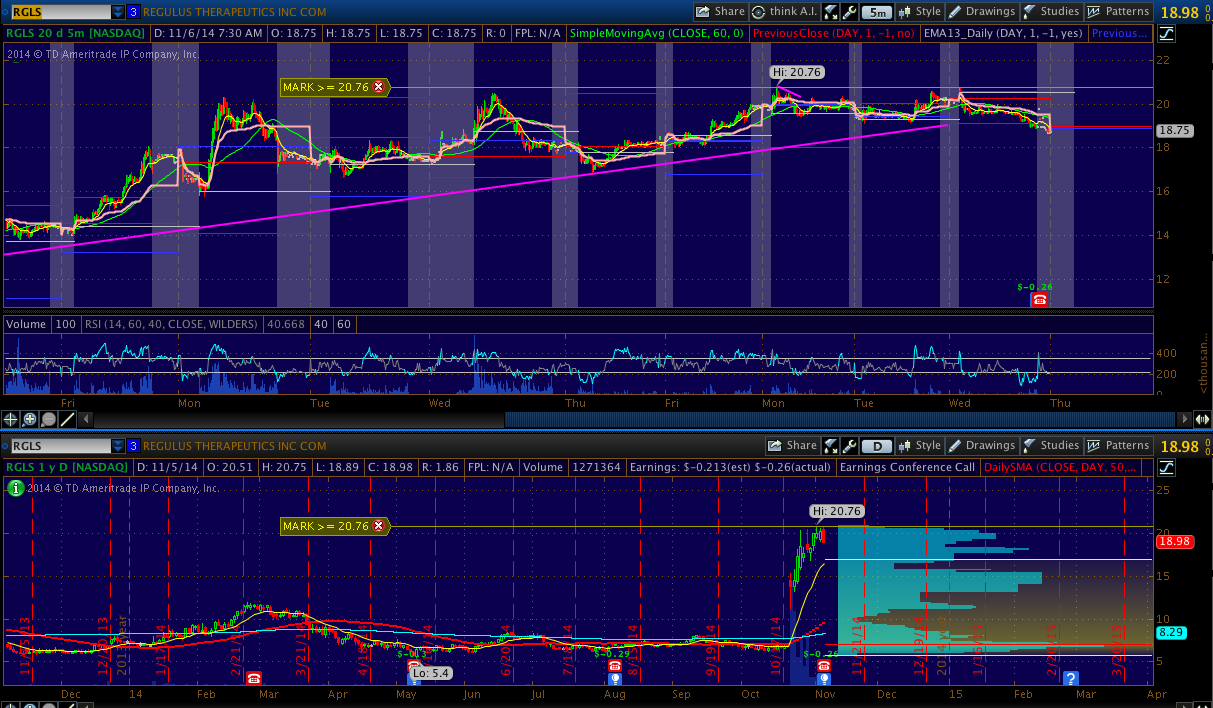 RGLS - Another overextended chart, hitting resistance at 20.76. Missed estimates after the close on 11/5. I think its time to sell the news.