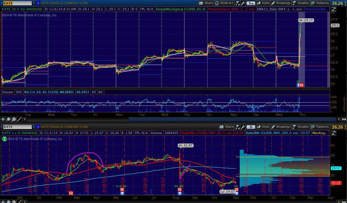 KATE - nice premarket action. Earnings miss but for some reason its getting bought.