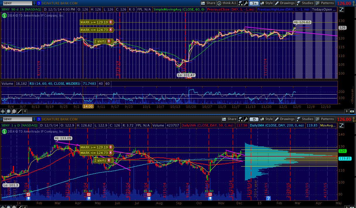 SBNY - Nice breakout of a bull flag on Friday. May hit resistance on 126. I'm bullish if it could get above that level.