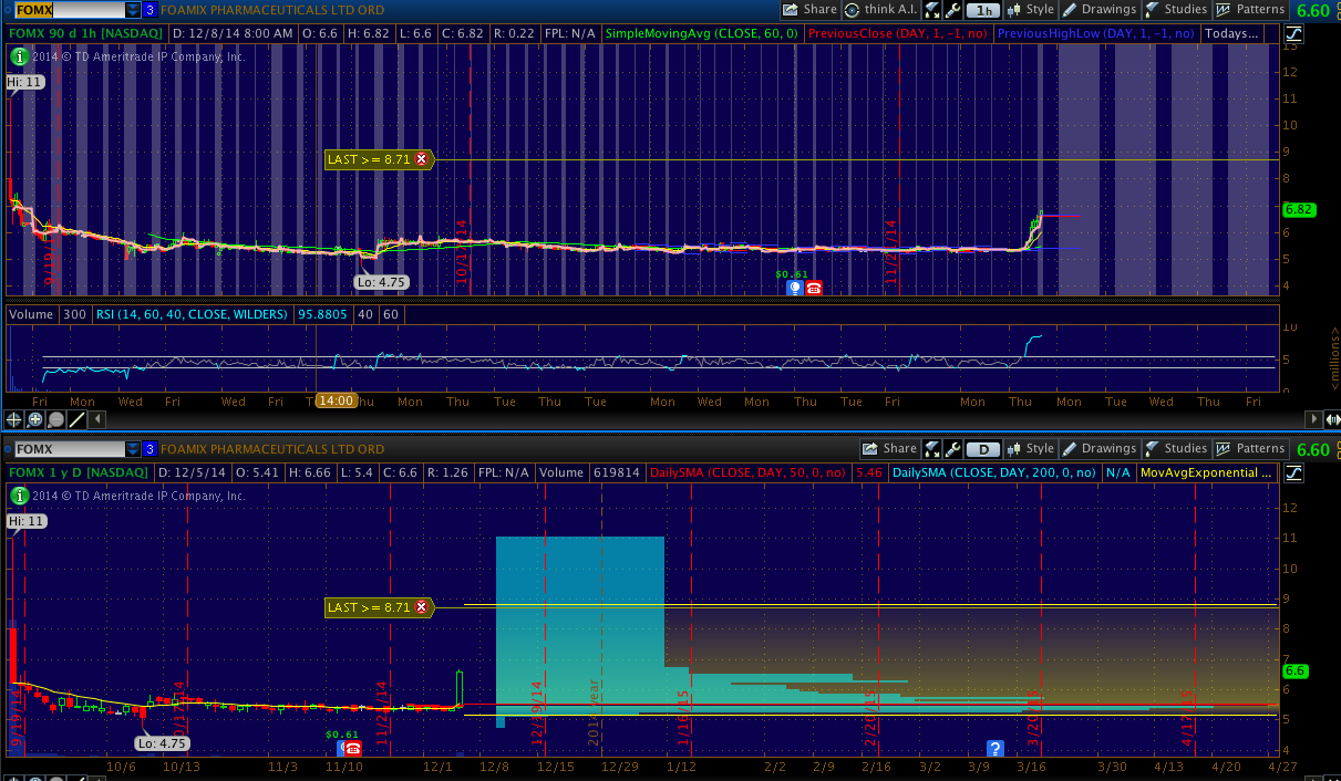 FOMX - Big move out of the consolidation range on Friday. Looking for a continuation as we go into the Dec 10 Oppenheimer conference where they will present.