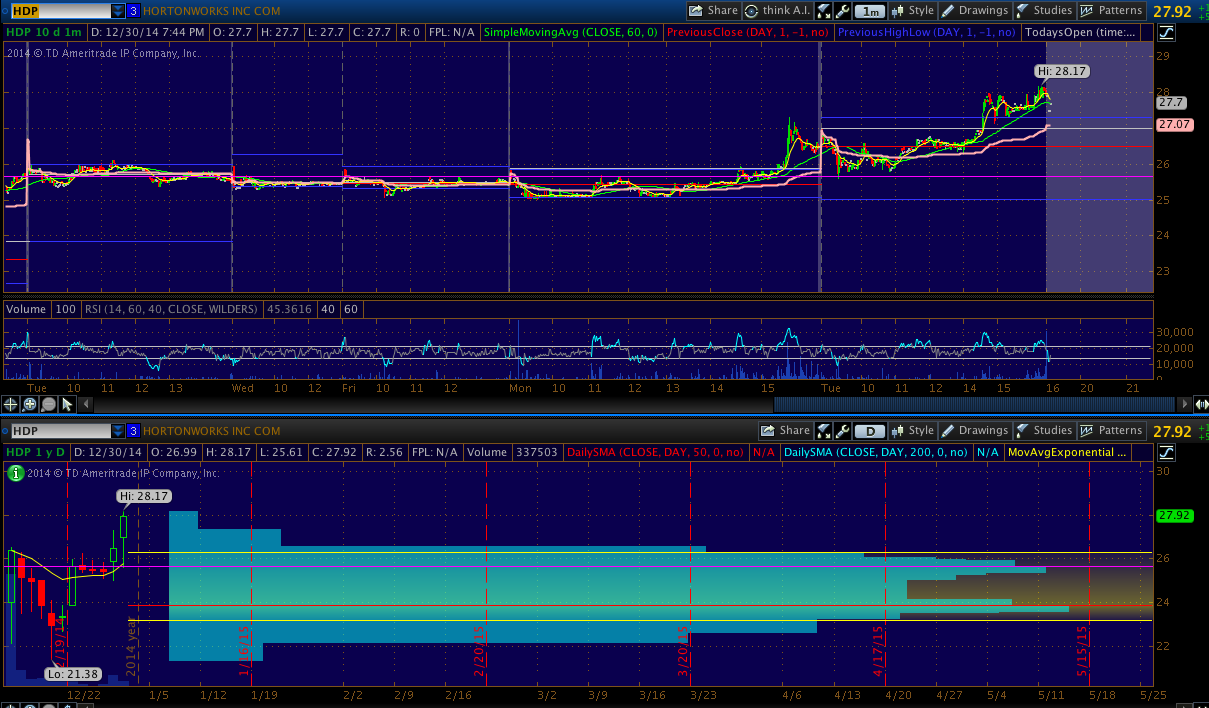 HDP - Has potential to run to 30+. I tried getting long it today near the double bottom but had too conservative an entry price and didn't get filled. Would play r/g and then swing if we get a good risk reward setup.