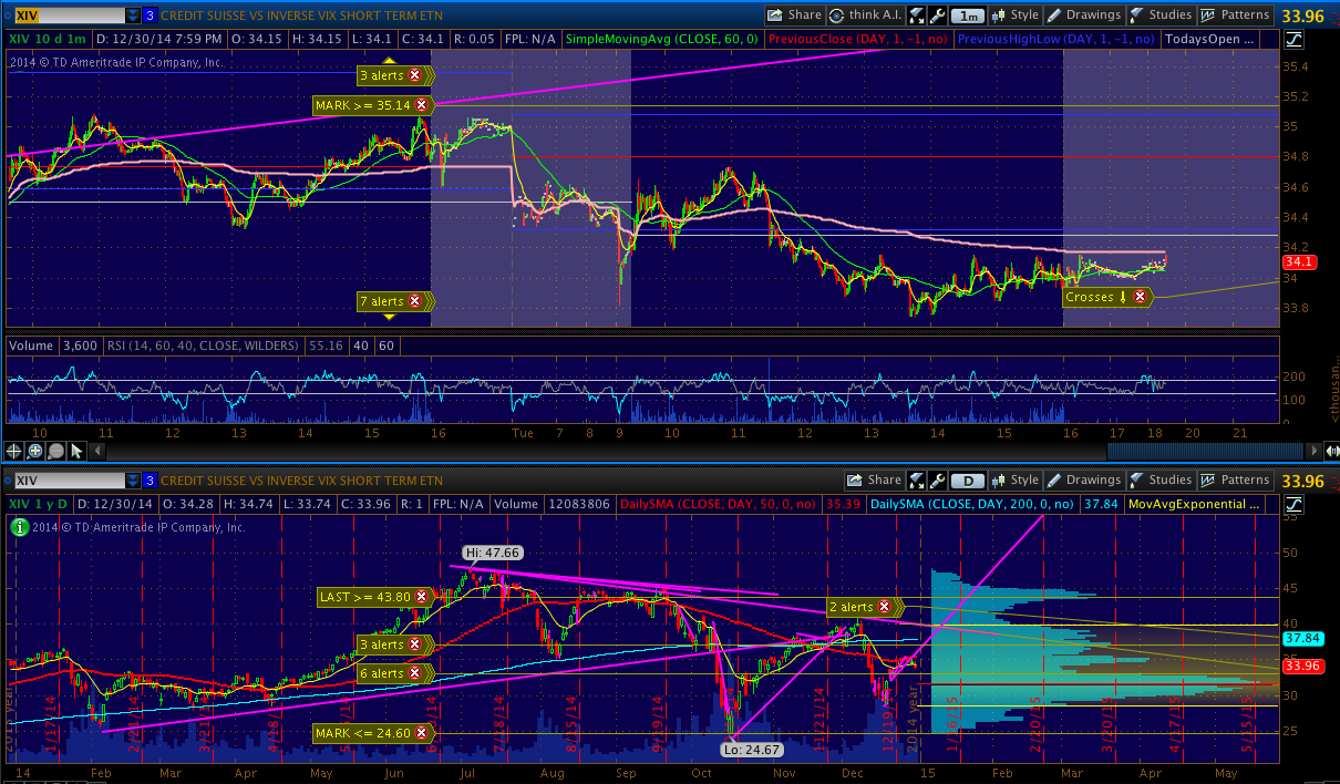 XIV - The market's pulling back most likely on tax loss selling. Will start sizing in if it gets under 33.