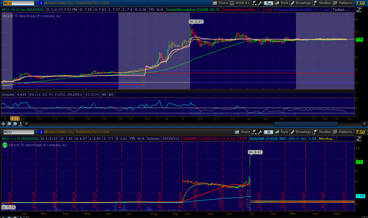 BCLI - On Friday this looked like it was going to be the next NDRM at first, but pulled back some. However, 7 seems to be holding up, it's in blue skies, so it could just be resting to continue its run as a breakaway gap.