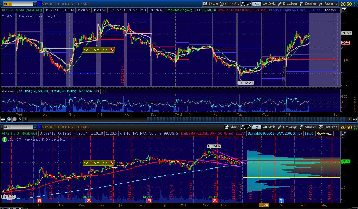 VIPS - Swing trade idea. Breaking out of the falling wedge.