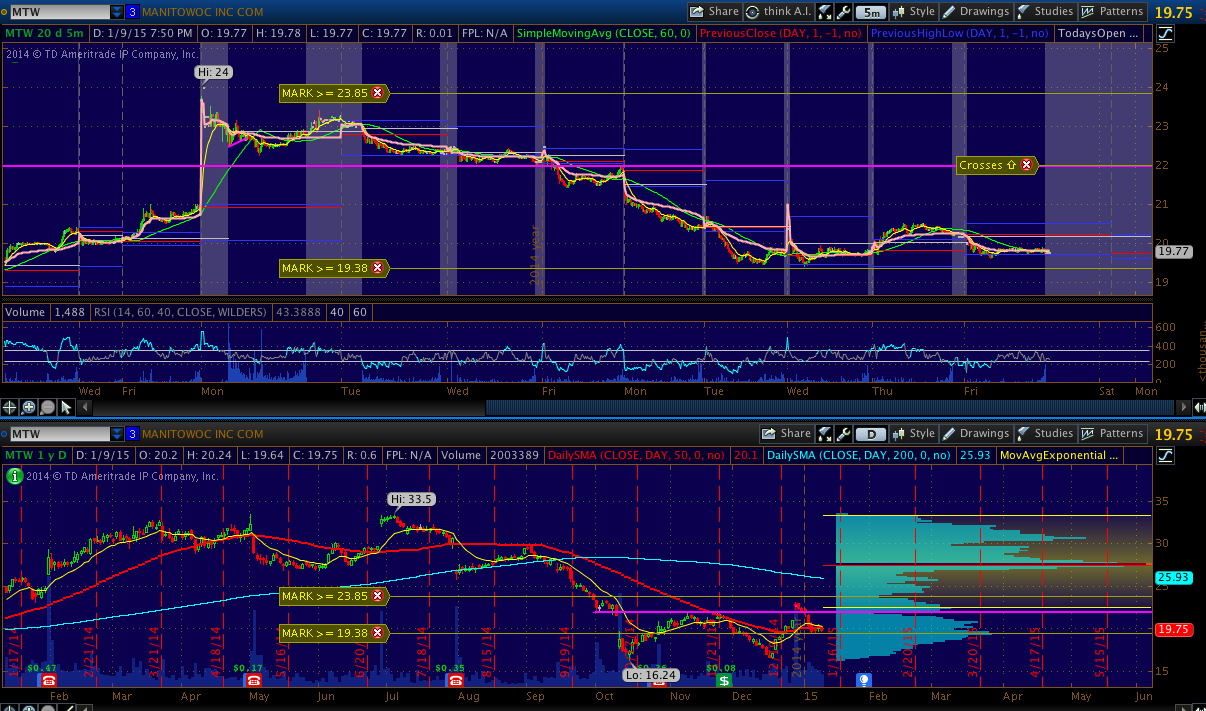 MTW - Ichan has a stake in this and rumors are that this is a candidate to be split up in to separate crane and food service businesses. I like going long here for swing trade with a risk on 19.30.