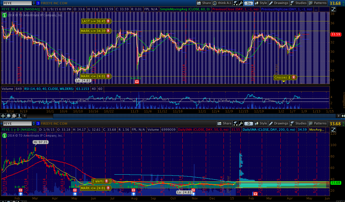 FEYE - I just like the look of this chart. It's making higher lows, has spent months consolidating, and its coming up into the 200DMA. Could be ready for a substantial breakout above 34.
