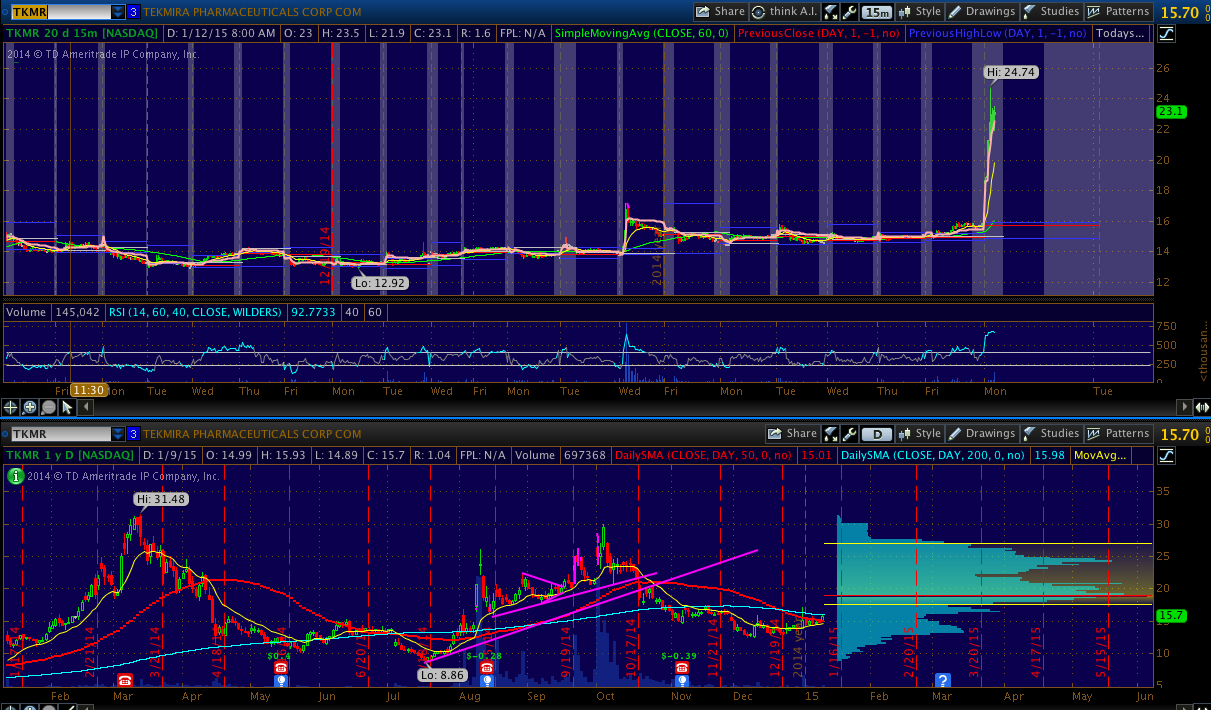 TKMR - Merger agreement with OnCore Biopharma announced this morning. Surely this will have big range and some trades as many of the biotechs have lately.