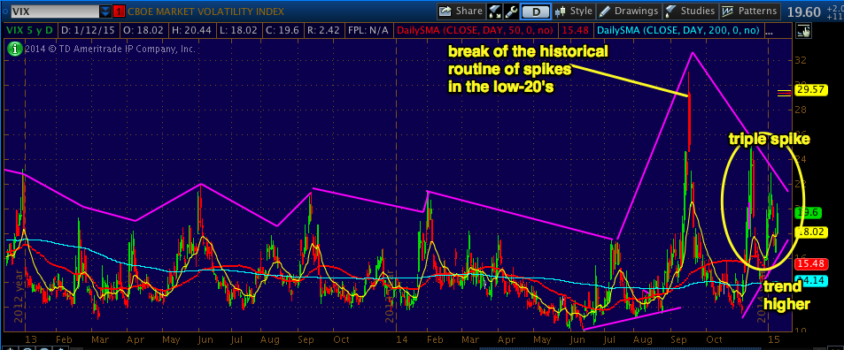 Furthermore, the behavior of the VIX has me concerned. Normally the VIX spikes and quickly retreats, but that has not been the case since November. VIX has been trending higher. Have a look at my most recent post about the XIV and you will see that the behavior of volatility has significantly changed since the official end of QE3. These changes in the market lead me to believe that something may be brewing.