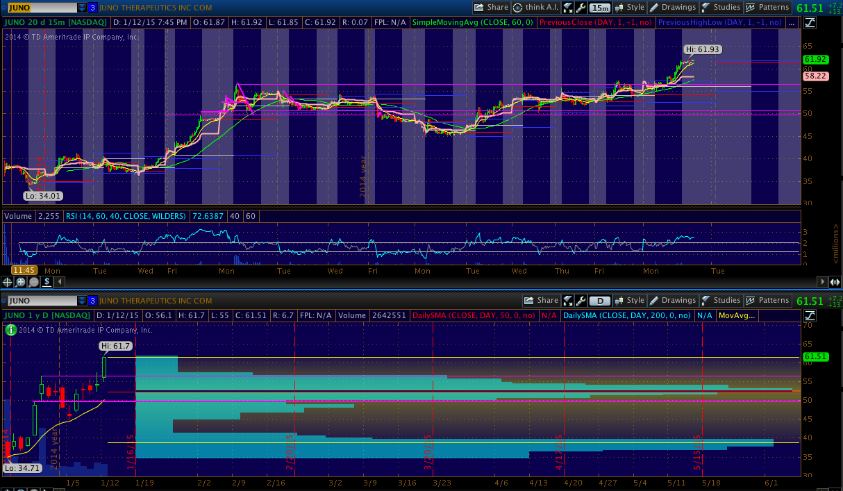 JUNO - Another power candle day. Quiet period expires Tuesday. Long biased on this one.