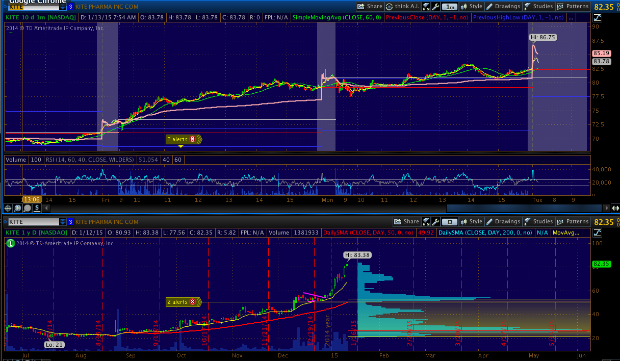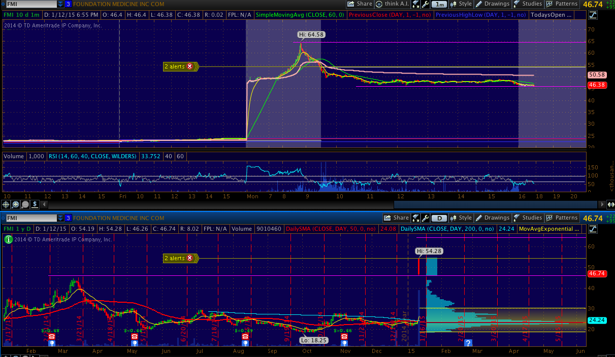 FMI - Up on news of a collaboration agreement with Roche. It held the lows and flatlined for most of the day. Hard to tell if this will continue to fade or if 46 will act as a base and it will grind up from here. Will be reactive to how this one trades.