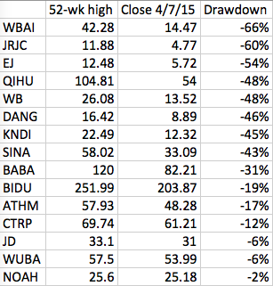 Some of the stocks like JD, CTRP, and ATHM were actually down much more but have recently started climbing back to the highs. We may soon see other former leaders in the group like WB, DANG, and QIHU catch up.